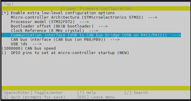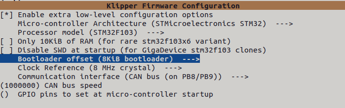 cd ~/klipper && rm -rf ~/klipper/.config && rm -rf ~/klipper/out && make menuconfig